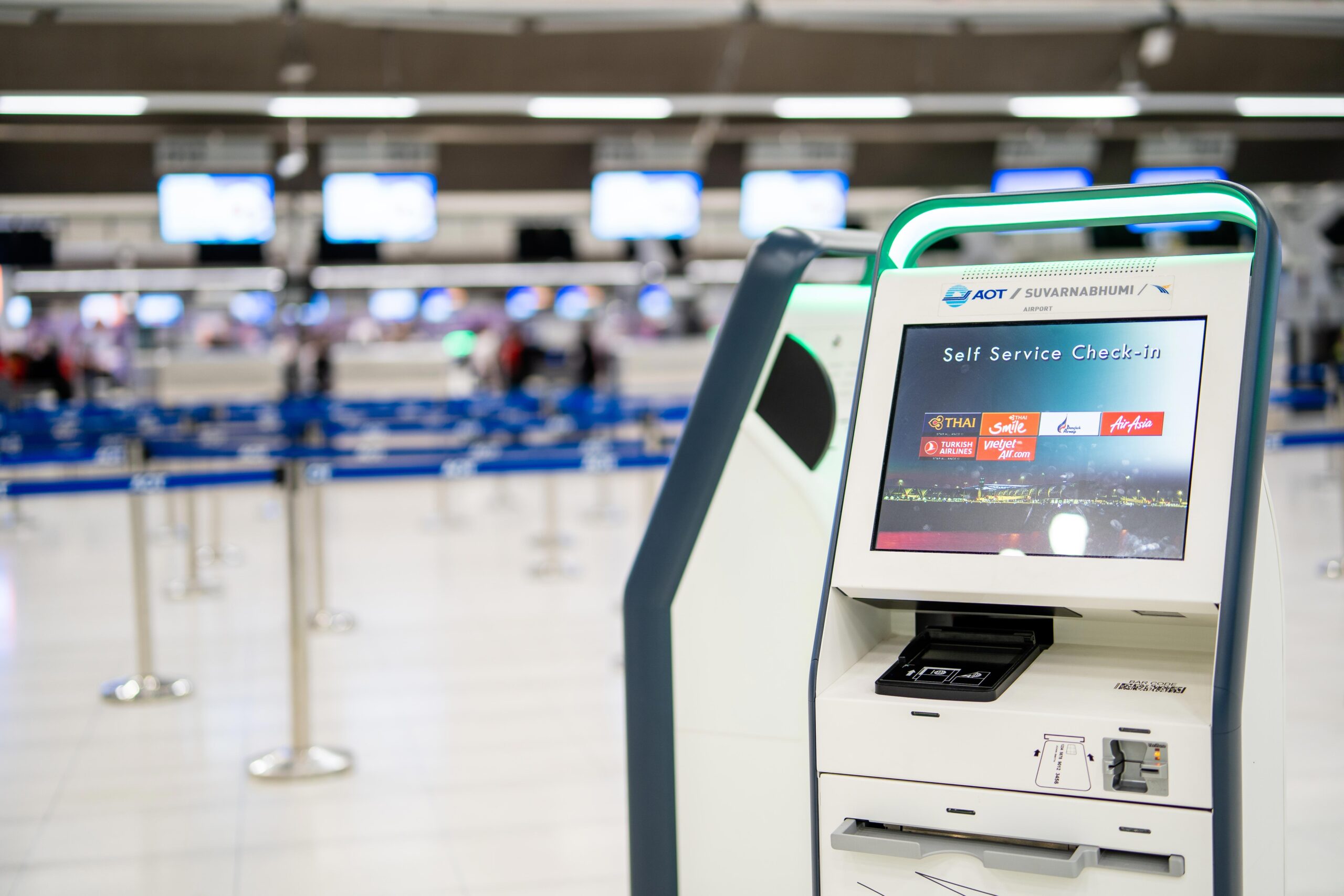 เรานำเทคโนโลยีสารสนเทศรูปแบบใหม่มาเชื่อมต่อและรองรับการบริหารจัดการท่าอากาศยานอย่างชาญฉลาด เพื่อตอบสนองต่อพฤติกรรมในวิถีปกติรูปแบบใหม่ของผู้ใช้บริการสนามบินในอนาคต โดยเฉพาะการใช้ Self-Service Technology เช่น Interactive Kiosk เพื่ออำนวยความสะดวกให้ผู้โดยสารสามารถดำเนินการ Check-In ได้ด้วยตนเอง การประยุกต์ใช้เทคโนโลยีนี้มีวัตถุประสงค์เพื่อบริหารจัดการ Passenger Flow ให้เกิดความสะดวก รวดเร็ว และลดความหนาแน่นบริเวณ Counter Check-In ซึ่งเป็นการเพิ่มประสิทธิภาพการบริการให้สามารถรองรับอัตราผู้โดยสารที่คาดว่าจะเพิ่มขึ้นในระยะยาว